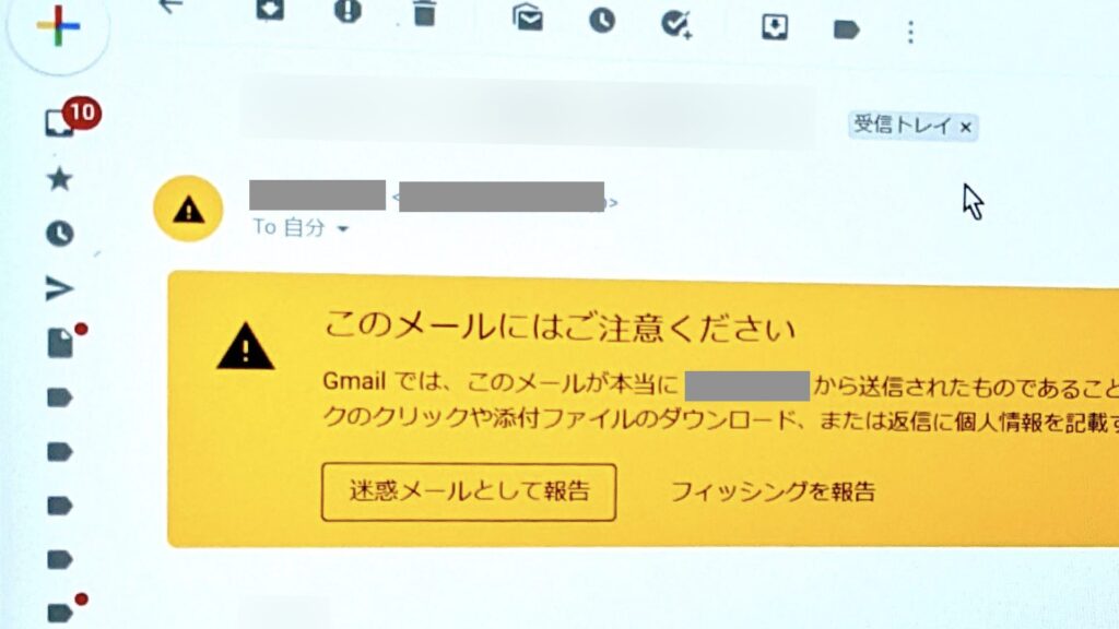 - 不審な送信元:メールが不審な送信元から送信された場合、Gmailは注意メッセージで警告します。