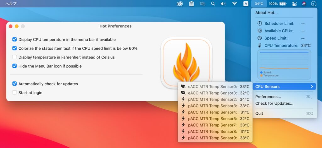 この方法を使えば、メニューバーからいつでもCPU温度を確認することができます。