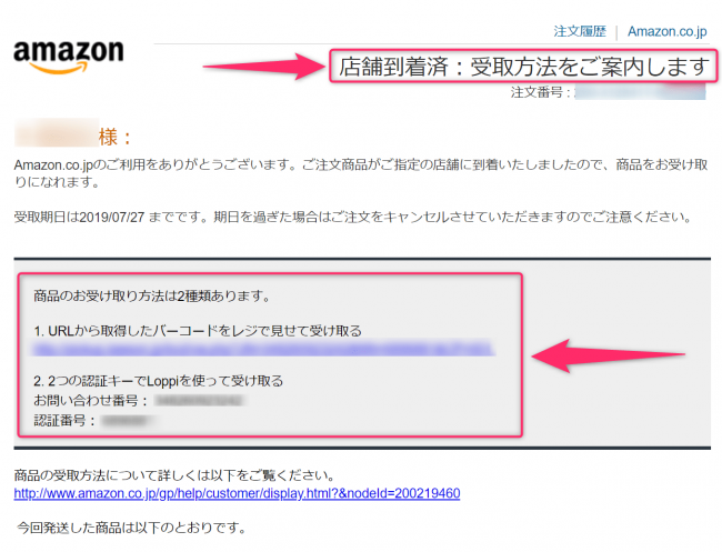 以下は、アマゾン店頭受取メールが届かない場合の対処方法です。