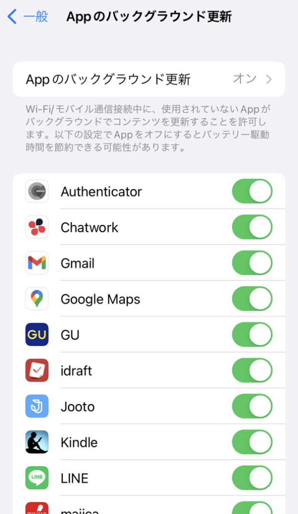 - バックグラウンドでの更新が問題を引き起こしている特定のアプリがある場合、そのアプリの更新を停止することができます。これにより、バッテリーの消費を抑えることができます。