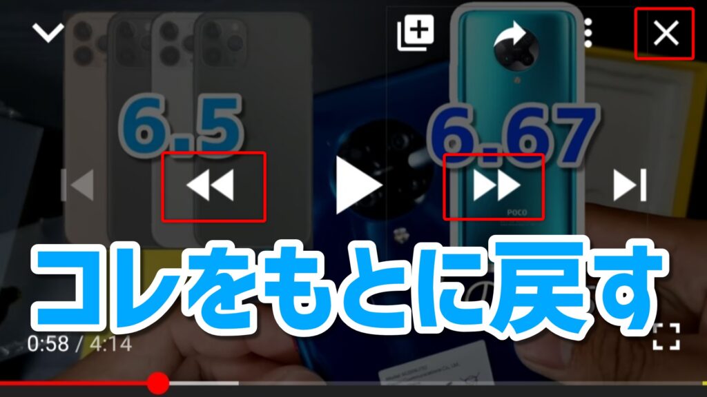- このボタンをタップすると、直前に視聴していた動画に戻ることができます。