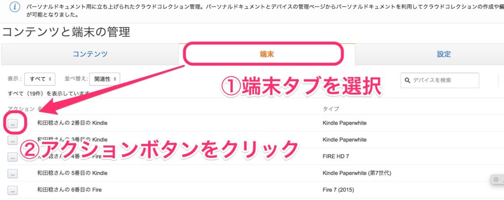 以下、Kindle端末の登録解除の手順をご紹介いたします。