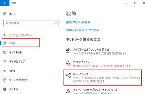 - [ネットワークとインターネット] をクリックし、[ホームグループ] を選択します。