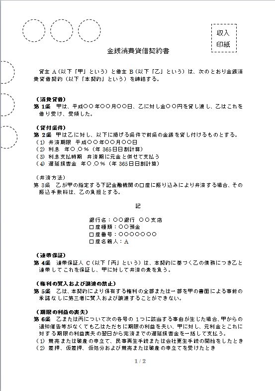 金銭消費貸借契約書には、借金に関する重要な情報が含まれており、借り手と貸し手の間の関係を明確にします。この契約書は、借金をする際には必要不可欠なものです。