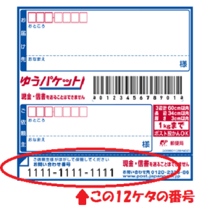 - 追跡番号を入力する - ゆうパックの追跡番号を入力する欄が表示されます。追跡番号は、発送時に受け取った伝票に記載されています。正確な番号を入力してください。