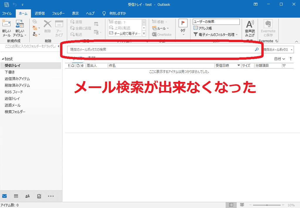 - アウトルックのインデックスが破損している可能性があります。以下の手順でインデックスを再構築してみてください: